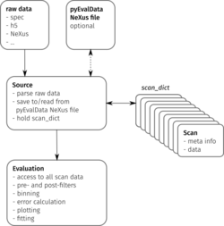 We develop this Python module to read and evaluate experimental data. It can handle raw data from different sources such as spec, hdf5, NeXus files which are common data formats at synchrotrons, FELs, as well as in a growing number of laboratories. The evaluation provides common functionalities such as binning, error calculation, and advanced data manipulation via algebraic expressions as well as pre- and post-data-filters. Furthermore, advanced wrapper functions allow for plotting and fitting sequences of one or multiple scans in dependence of an external parameter.