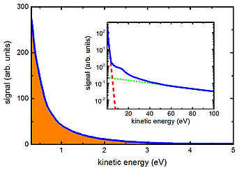 In einer Forschungsarbeit, die in der aktuellen Ausgabe der renommierten Fachzeitschrift Physical Review Letters veröffentlicht wurde, hat ein internationales Forschungsteam vom Imperial College London, der Universität Rostock, dem Max-Born-Institut, der Universität Heidelberg sowie ELI-ALPS dabei geholfen, dieses Rätsel zu lösen. Winzige Cluster bestehend aus einigen tausend Atomen wechselwirkten mit ultrakurzen, intensiven Laserpulsen. Die Forscher fanden heraus, dass die große Mehrheit der emittierten Elektronen sehr langsam waren (Abb. 1). Desweiteren hat sich herausgestellt, dass die niedrigenergetischen Elektronen mit einer Verzögerung im Vergleich zu den hochenergetischen Elektronen emittiert wurden.