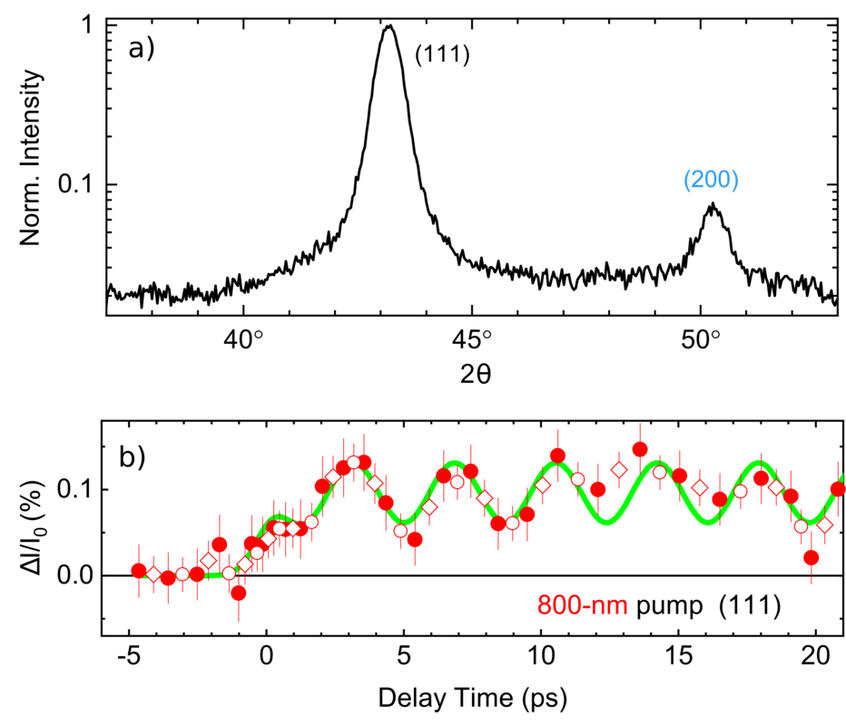 Abbildung 1 zeigt die zeitabhängige Intensität des (111) Bragg-Reflexes von cBN nach einer Raman-Anregung zweiter Ordnung, die Paare von akustischen Zonenrand-Phononen erzeugt [1]. Der experimentell beobachtete Zuwachs an gebeugter Intensität zeigt unmittelbar eine Umverteilung von Valenzelektronen aus den Zwischengitterplätzen der Einheitszelle auf die Atome. Dieses Phänomen lässt sich in den zeitabhängigen Elektronendichtekarten in Abb. 2 direkt verfolgen. Die beobachteten Oszillationen haben ihren Ursprung in einer kohärenten Überlagerung von zwei Phononen mit einem sehr kleinen Frequenzunterschied.