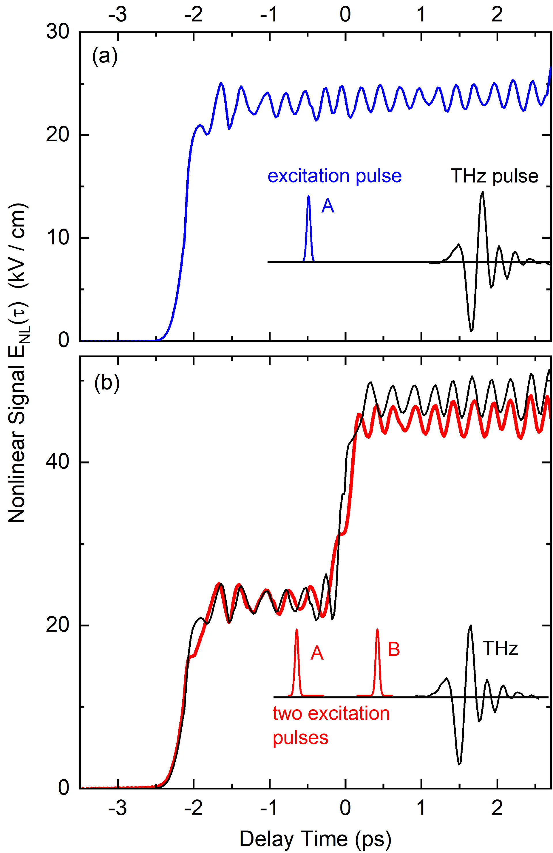 Experiments, in which electrons were generated by two light pulses separated in time, reveal a polaron frequency determined by the partial electron concentration created by each excitation pulse individually (Fig. 2(b)). After the second excitation, the polaron frequency remains unchanged, although the total electron concentration has doubled (Fig. 3(a)). This surprising observation demonstrates a minor mutual coupling of different vibrating molecular clouds and an effective decoupling from their environment. In contrast, the transversal excitations (Fig. 1(c)) occurring after electron generation are additive on a macroscopic length scale. The related step-like change of THz absorption (Fig. 2(b)) is determined by the total electron concentration in the liquid.