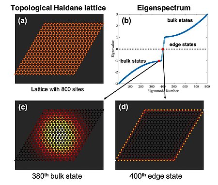 Originally discovered in condensed matter systems, topological insulators are two-dimensional materials that support scattering-free (uni-directional) transport along their edges, even in the presence of defects and disorder. In essence, topological insulators are finite lattice systems where, given a suitable termination of the underlying infinite lattice, edge states are formed that lie in a well-defined energy gap associated with the bulk states, i.e. these edge states are energetically separated from the bulk states, see Fig 1.