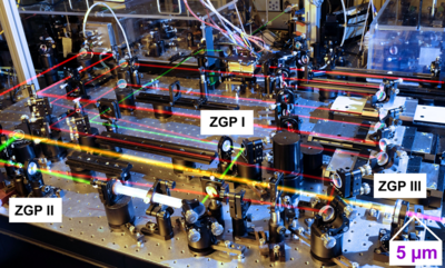 Other long wavelength OPCPA systems under development are motivated by MBI´s research utilizing HHG in the water window for soft X-ray transient absorption studies. This includes a 1.55 μm signal/3.1 μm idler dual-beam 100 kHz OPCPA system, which has already delivered an unprecedented average power of 43 W at the 1.55 µm signal wavelength, in 51 fs long, passively CEP-stabilized laser pulses, accompanied by 12.5 W, 73 fs, 3.1 µm idler pulses. Link