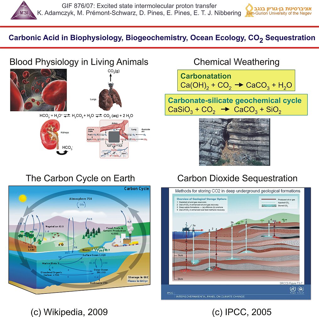 14. The facts that carbonic acid has an acidity between that of chloroacetic acid and formic acid, and the carbonic acid is relatively long lived suggests strongly the possibility that carbonic acid plays a key role as an intact molecule in the CO2 household in living animals, in chemical weathering of rock formations, in the CO2 household of Earth and in CO2 sequestration schemes where water is present.