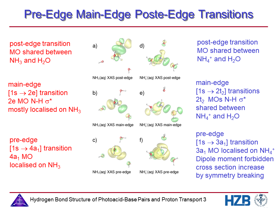 3. Pre-edge main-edge and post-edge transitions for NH3 and NH4+.
