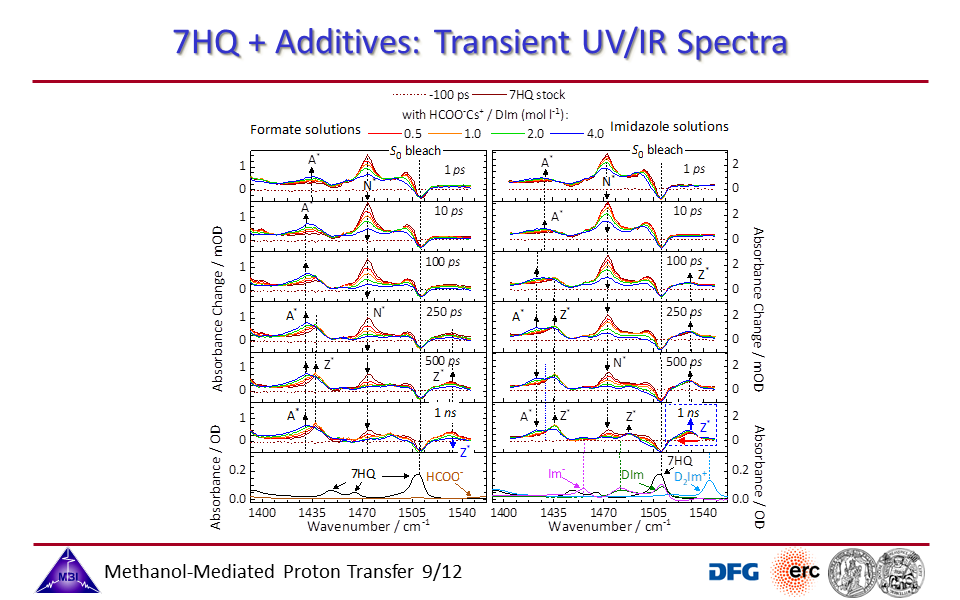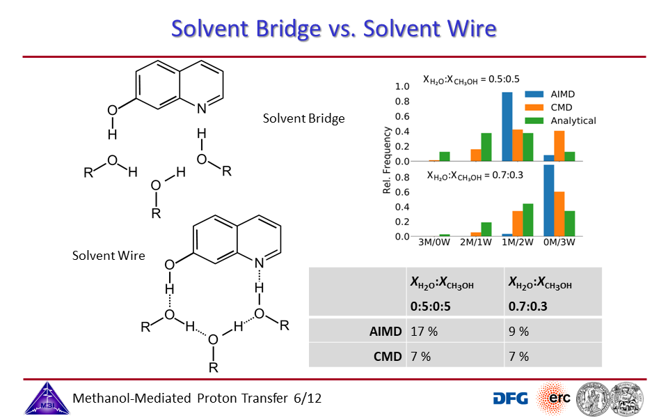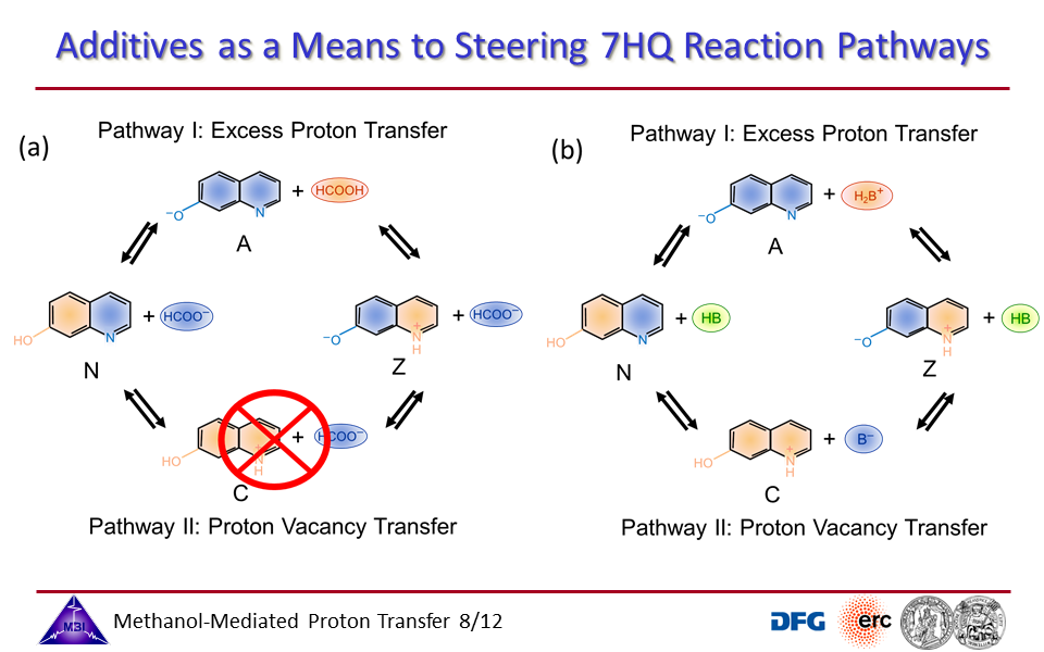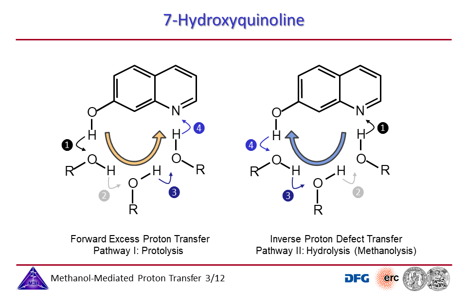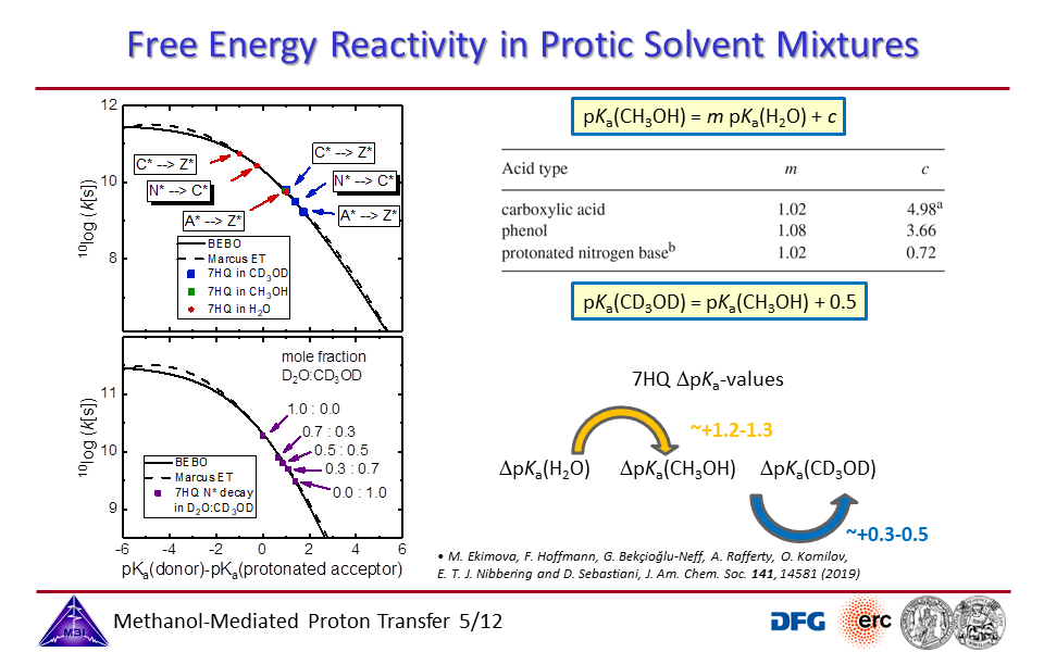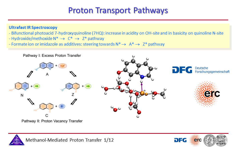 3.1. Scientists of the Max Born Institute of Nonlinear Optics and Short Pulse Spectroscopy (MBI) and the Martin-Luther-University Halle-Wittenberg (MLU) shows that proton vacancies in the form of hydroxide/methoxide ions are as relevant for proton transfer between acids and bases as hydrated excess protons (H3O+, H5O2+), thus pointing for a clear demand for refinement of the microscopic picture for aqueous proton transport – in solution as well as in hydrogen fuel cells or transmembrane proteins – away from currently often assumed dominant role of hydrated excess protons.