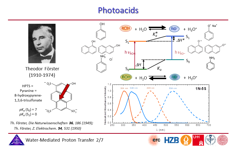 2.2. Photoacids typically can be characterized by the Förster cycle, connecting absorption/emission transitions with acid strengths.