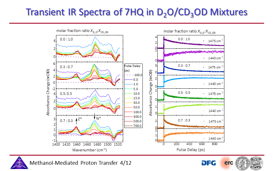 3.4. Transient UV/IR spectra monitoring the N* to Z* tautomerization reaction as a function of [CD3OD]:[D2O] molar fraction ratio.