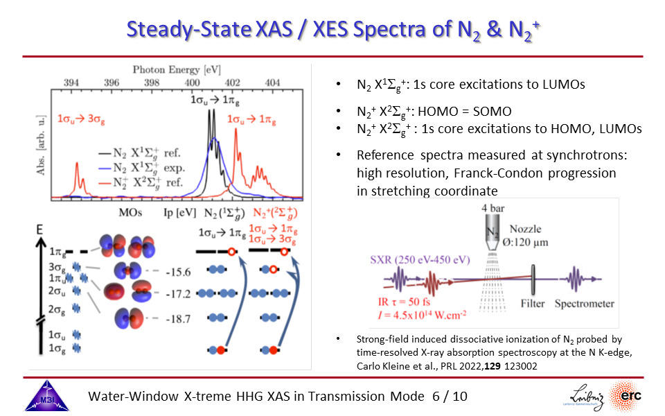 6. Steady-state XAS / XES spectra of N2 and N2+. Relevant molecular orbitals.