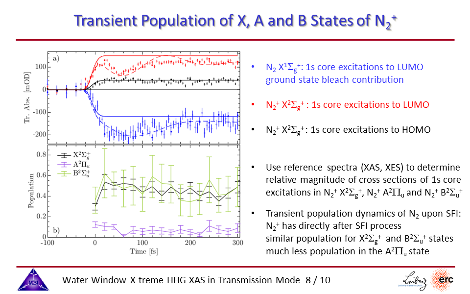 8. Transient population dynamics of the X, A, and B states of molecular nitrogen cation.