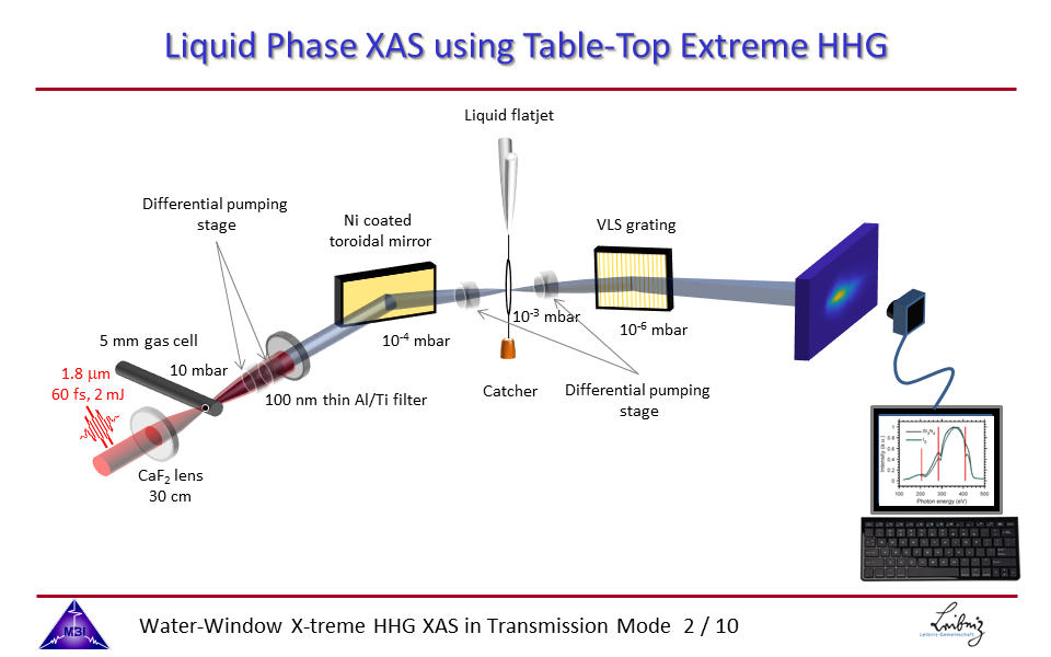 2. Table-top approach to liquid phase X-ray absorption spectroscopy using HHG with long wavelength driver pulses and flatjet technology.